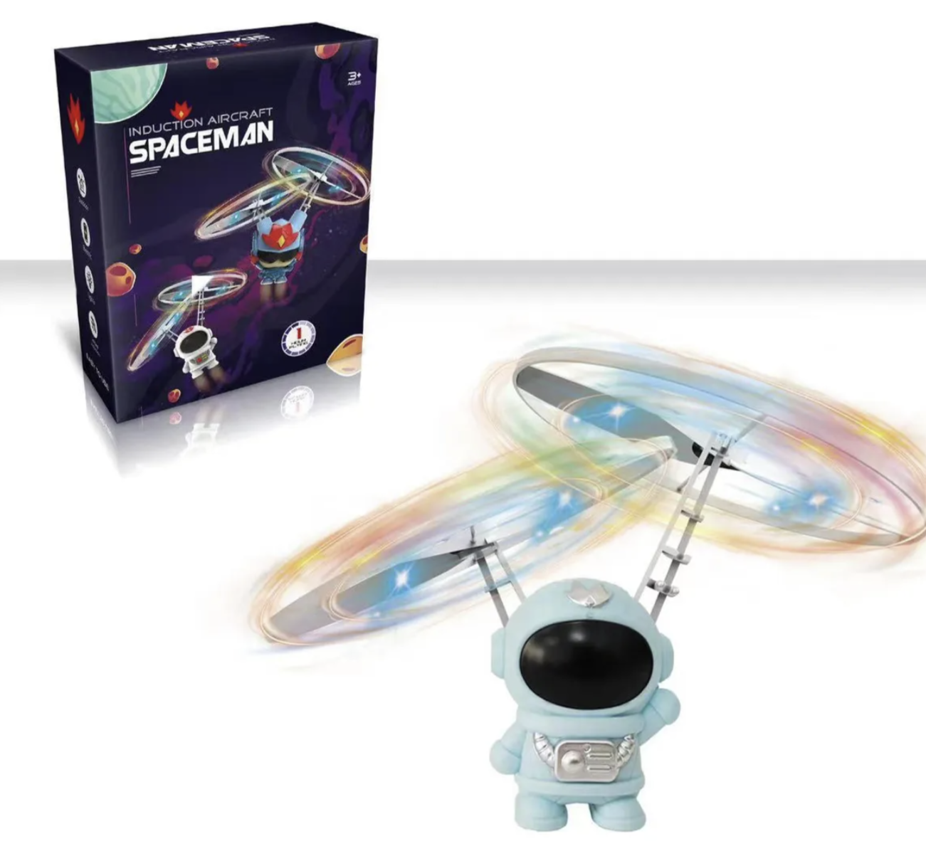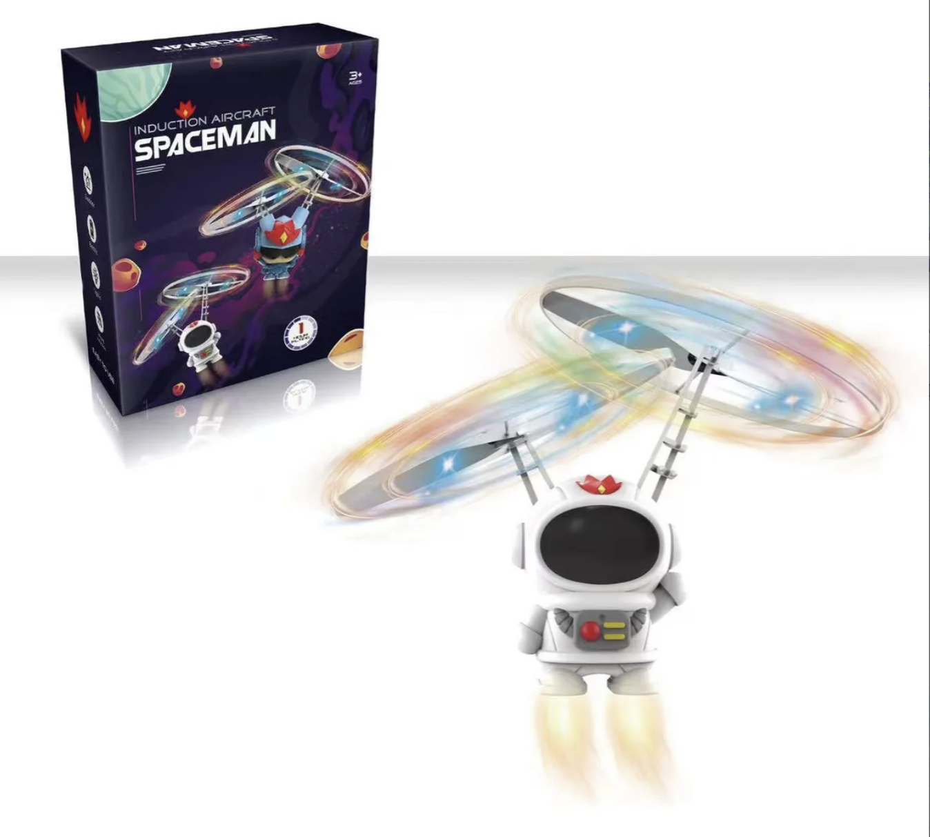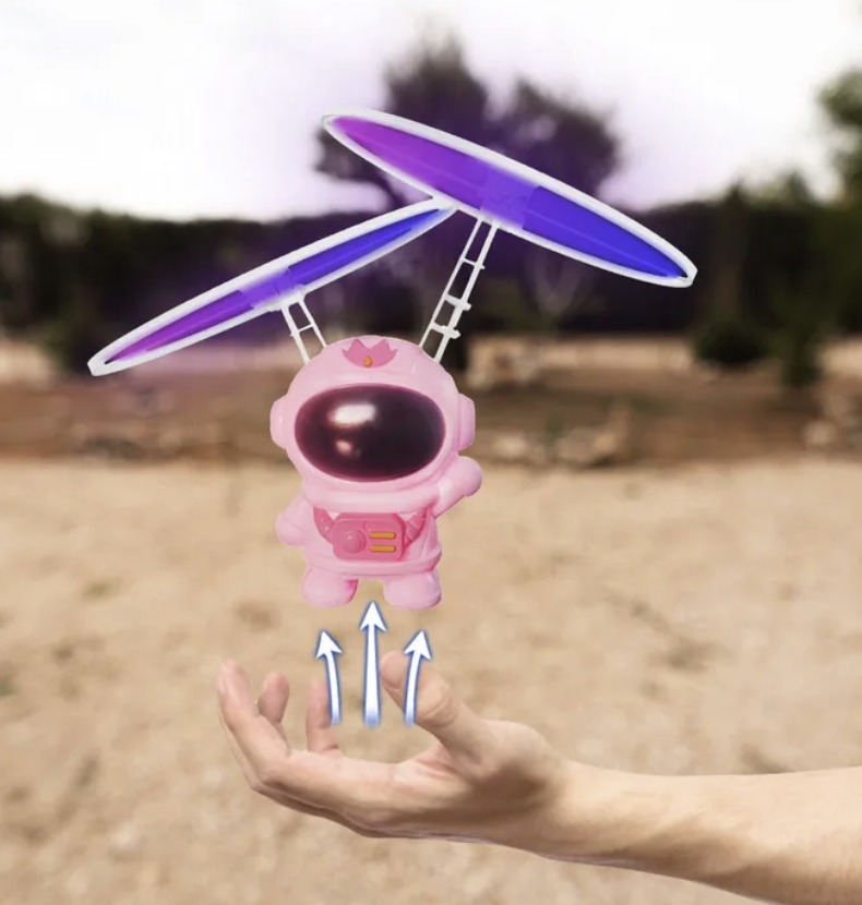Consiste en una figura de Astronauta volador en suspensión, recargable mediante USB, moderna tecnología Hover de sensor de infrarrojos LED; suspensión inductiva y protección ante colisiones. Además su peso es ligero, fácil de volar con fácil manejo